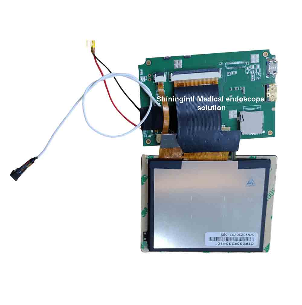- When working normally, the display screen displays live video in full screen, real-time time in the upper right corner, and battery level in the upper left corner. The indicator light is green.